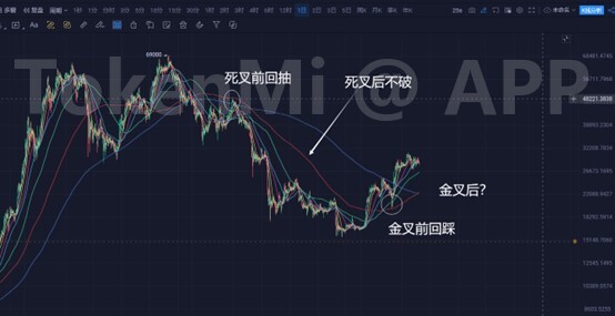 日线级别上其实意思不大,就是十字星倒腾最终周线收阳即可,至于想要大跌就别想了,空军还是早点洗洗睡的好。日线主要证明一个悖论,那就是下跌和均线规律之间的悖论: