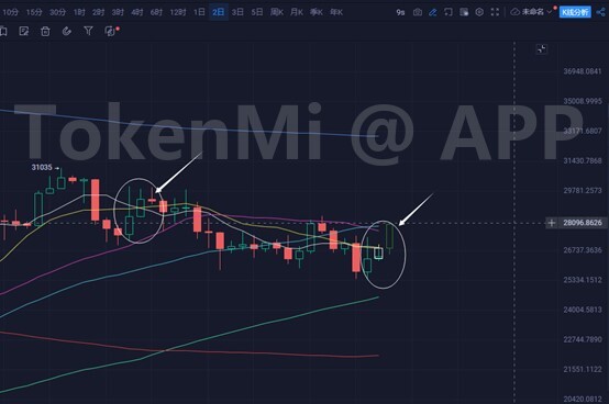3日线如果收和前面实体差不多的线,就需要拉回到27000一线,下个周期再选走类似U型底上去或者依旧是无法动弹继续震荡或者下行。