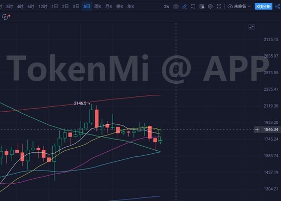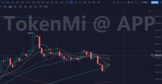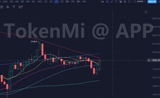 而且这种走势需要以太坊的配合,以太最近几个月都弱于大饼,这一点是非常奇怪的,一向作为风向标的它走得却磕磕绊绊不如人意。它的形态相对大饼要复杂许多。比如它的2日3日5日共振就可以保持当下姿态收尾也行,但如果大饼要能上行,以太不动是不行的,所以它的这几个周期最少需要收到1800-1840美金之间才行。