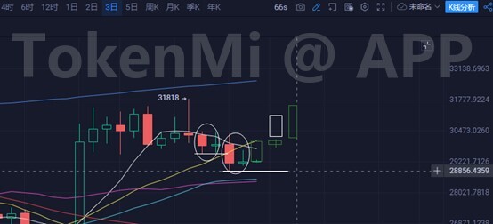 另外下周二早上8点收7月线,也就是说,7月月线形态究竟如何,要等到周二早上才明朗,这几天7月尾声收官状态,整体月线也不大,也还是可以幺蛾子改变的,只不过改变的概率不高,看各种小级别来说,震荡消耗过去的概率更大一些。根据3日线记忆唤醒和启明星玩法可能角度来说,月线可能就收在30000±300美金范围内。短线的话阴线后已经4天横盘,稳住的概率较大,无需纠结。