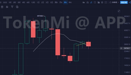 既然合约都已经到了24000一线,现货继续挣扎估计也意义不大,尤其以太坊已经破了14月线,那么大饼在合约范围内晃荡最终收点下影线合情合理。但这个K线形态也只有一种解法,那就是9月向上走,否则整个形态M头就容易成立,那么就必然选择向下,所以逻辑上8月就在这个下影阴线里耗,9月收一个止跌倒T或者类似并列线一类的,让季度线和2季度实体差不多,四季度多空决战而且必须多军胜出,否则就谈不上什么24年还有行情的说法。