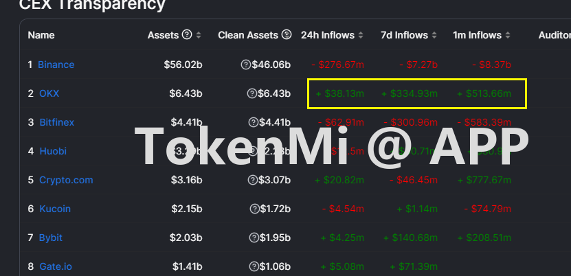 收币安提币的影响,OKX这几天资金还净流入比较多。