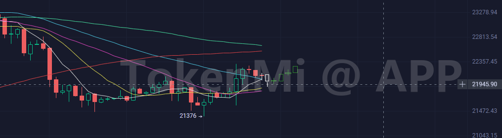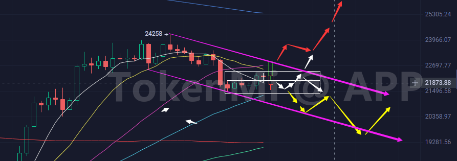 今天的行情和昨天类似,处于可以震荡和可以继续拉盘的状态里,震荡空间是21900-22500,拉盘空间则是下限不变上限提升至22700,白天可能没什么反应,重点在晚上的12小时,现货还是老话,耐心。