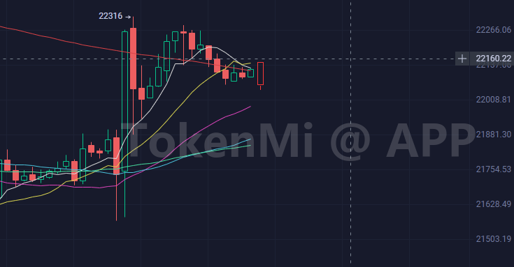 昨天市场略微反弹,形成了一个中性偏好一点点的阳线实体,不过因为均线关系相对复杂,所以今天的行情大概率就是三条均线之间运动,大约在21900-22500之间。总体会形成十字星造型,然后等待明天2日线和3日线共振之后再选择,对17号收线的5日线形态进行确认。强的话17号早8点到22700一线让5日线形成并列,弱的话5日线就是一个十字星然后继续等待后续选择。