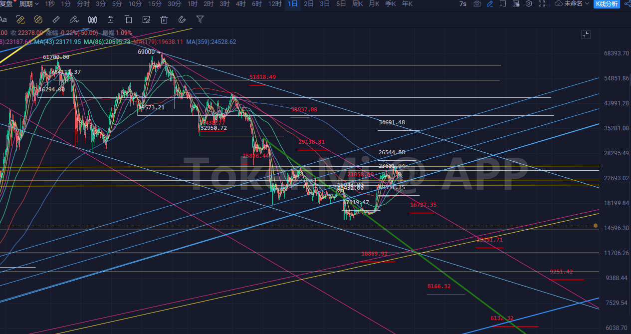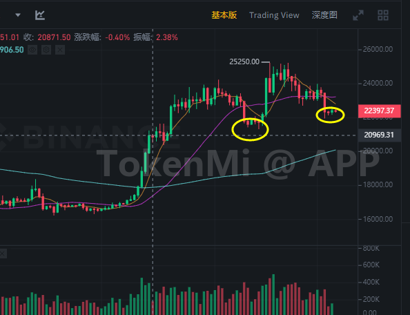 短期走势而言,比特币的强支撑位,后者说大概率的反弹位置是21800一线。