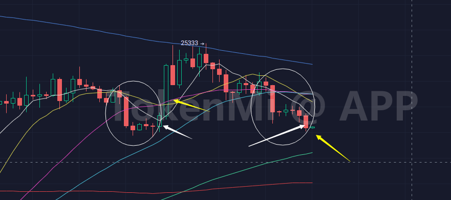 等咯,看今天市场怎么玩撒,大阴出来,那么前一次大阳后也没涨,这里大阴也未必继续跌。如果大阴不出来,那么就更说明跌不动,纠结啥呢![[旺柴]](https://img.tokenmi.co/emot/qq/140.png)