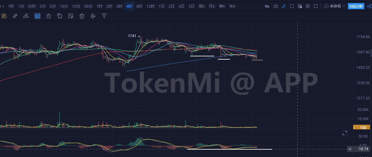 这种低点位置,有时候会是假点,就是破不破对方向没啥影响,以太的1520暂时经过这段时间看,可能有效,但是前面判断不了能以这里为止损