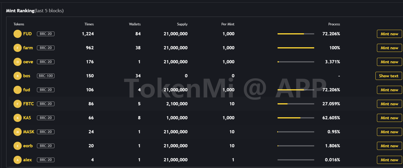 8 月 31 日:@binance推出Ordinals铭刻服务,预示着币安也要入场了。SATS铭文进度68.56%,持币地址数30,071,Mint成本0.49U,市场0.36U