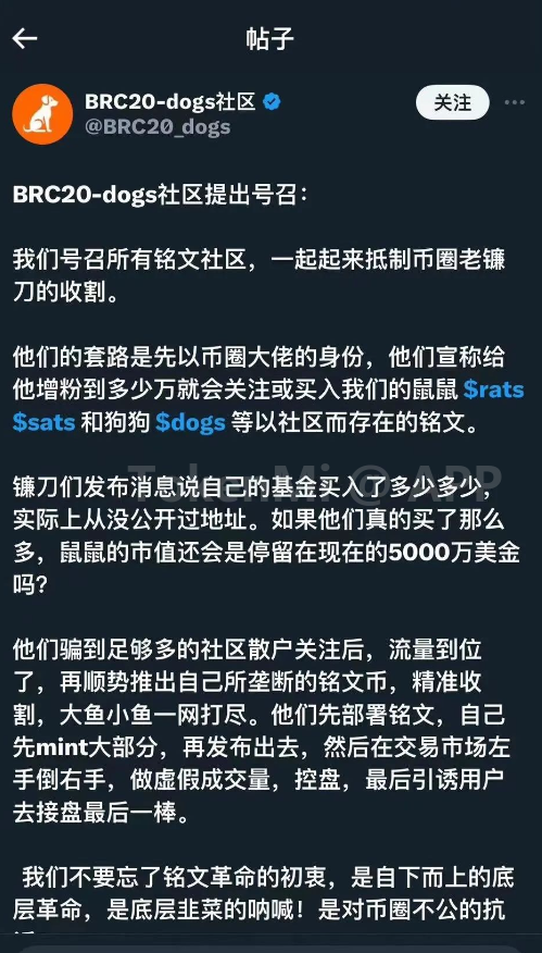 任何事都是预判也需要预判,比如走路,你不知道下一脚会踩在哪里就无法迈步。至于说赌狗行为,我不是很提倡这两个字,只是有时候的确是劝不住难免有点急躁,不管是sats还是rats这类铭文,本质上和nft没区别,属于无实用价值的泛艺术或者叫亚艺术品类,而只要跟艺术两个字沾边你就应该知道价格没有道理可言,涨跌都是如此。人潮汹涌上天,饭走茶凉入地,我不懂艺术,所以也不参与艺术。