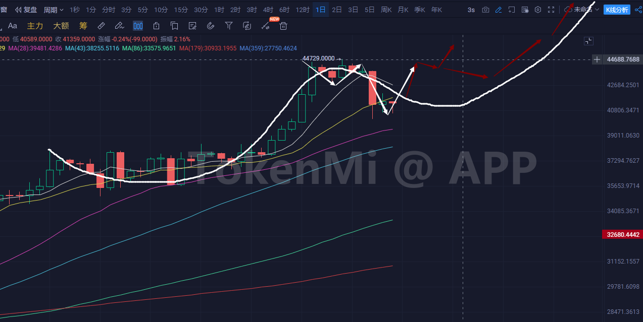 BTC,昨天你视频说了,42000上下3000美金,肯定是震荡。