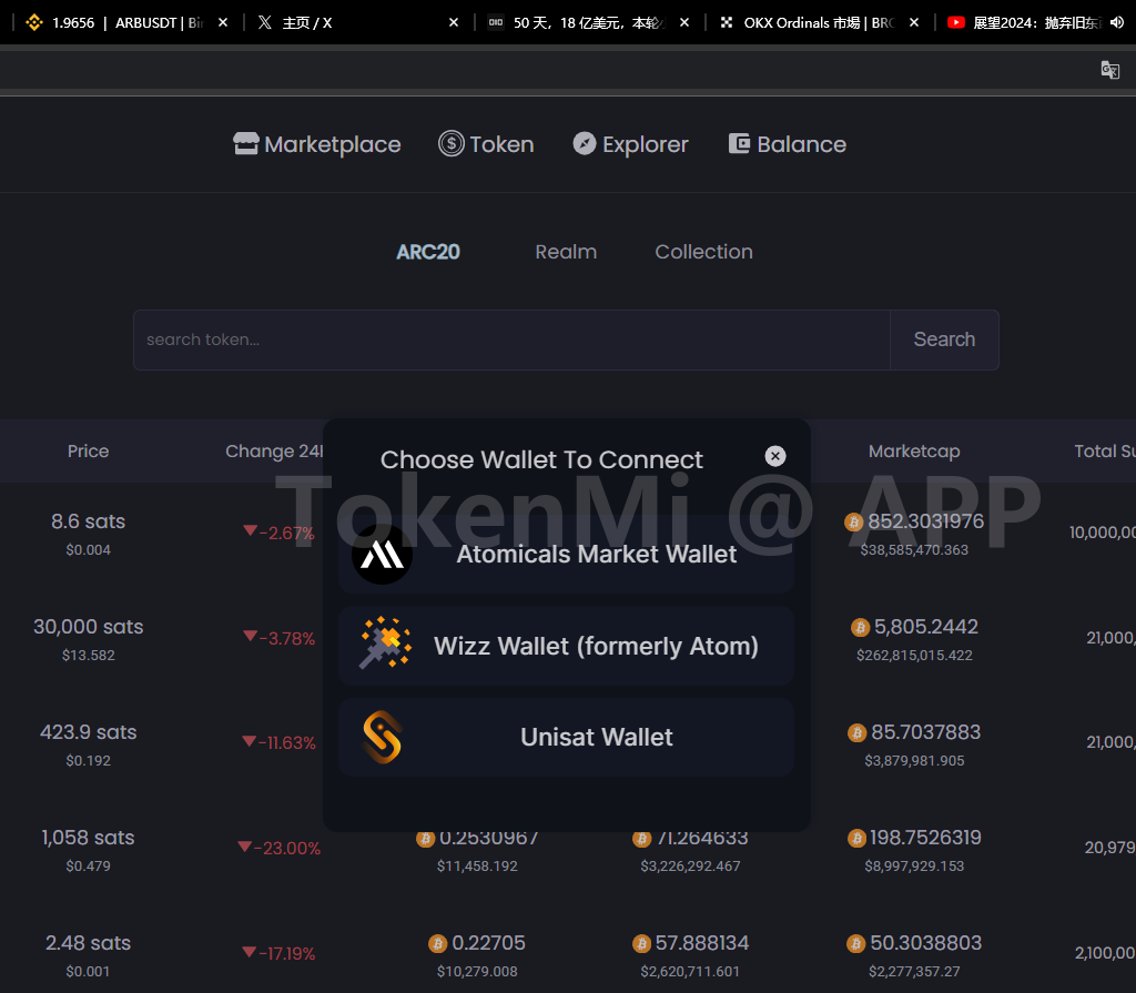 1、Arc20市场/索引/铭刻网站: https://atomicalmarket.com