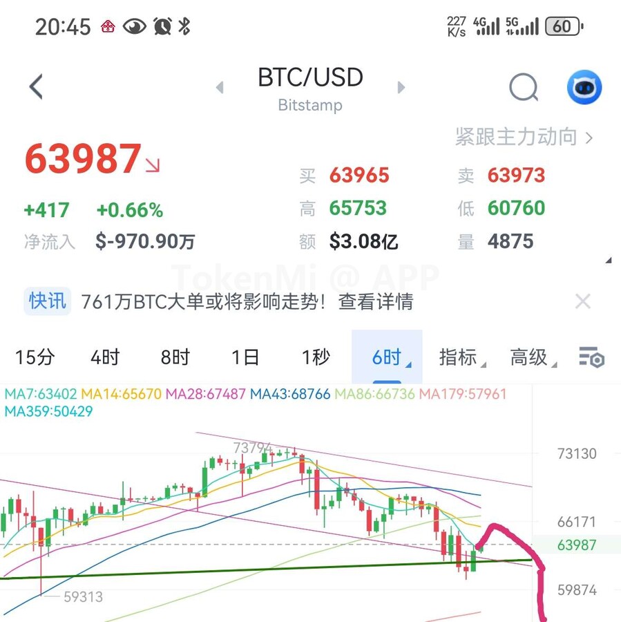 62100,浪费,完全可以昨天反弹,在65000+跑