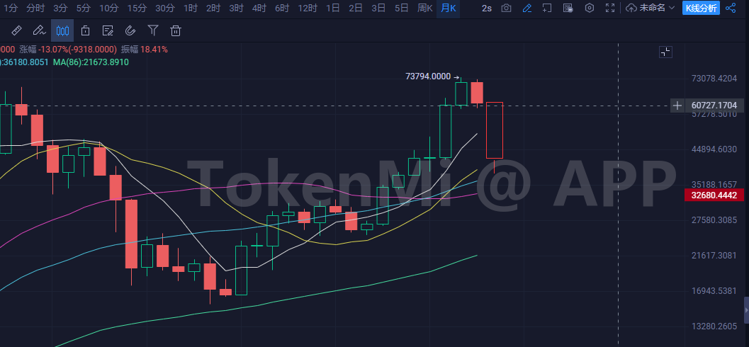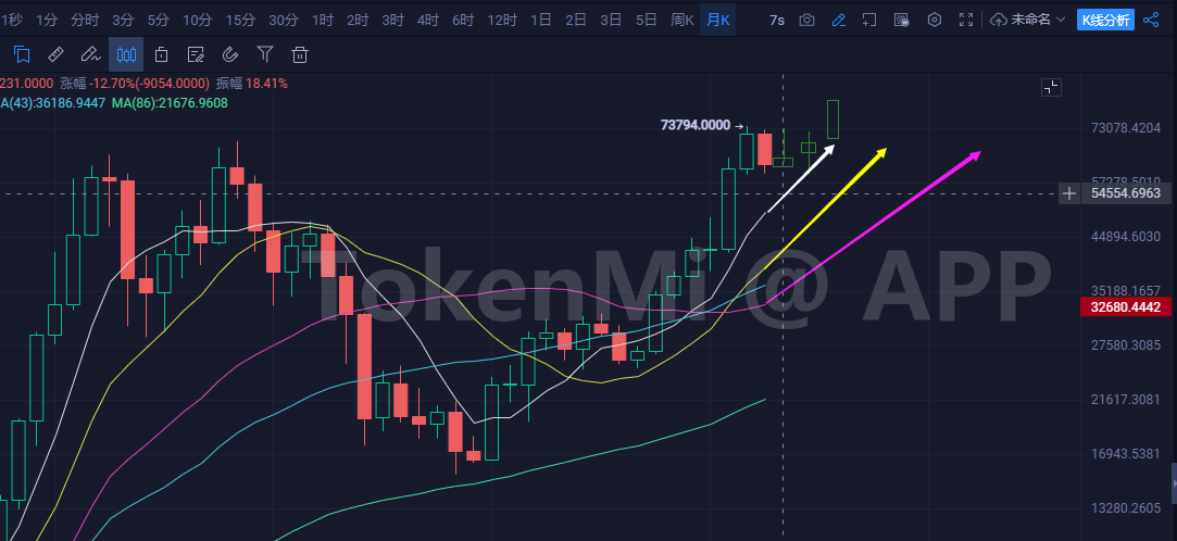 4月即将结束对吧,还有今天和明天的走势,然后要么并列要么就略带一点下影线,要保持震荡,那么5月就必须上行,至于说能否保持住两说,下面月级别7线是不会破的,目前已经在5万了,下个月上移叨叨55-57一线左右,所以说时空来说,都差不多了,但主力就是不动,那谁也没辙,但是5月一定会动的