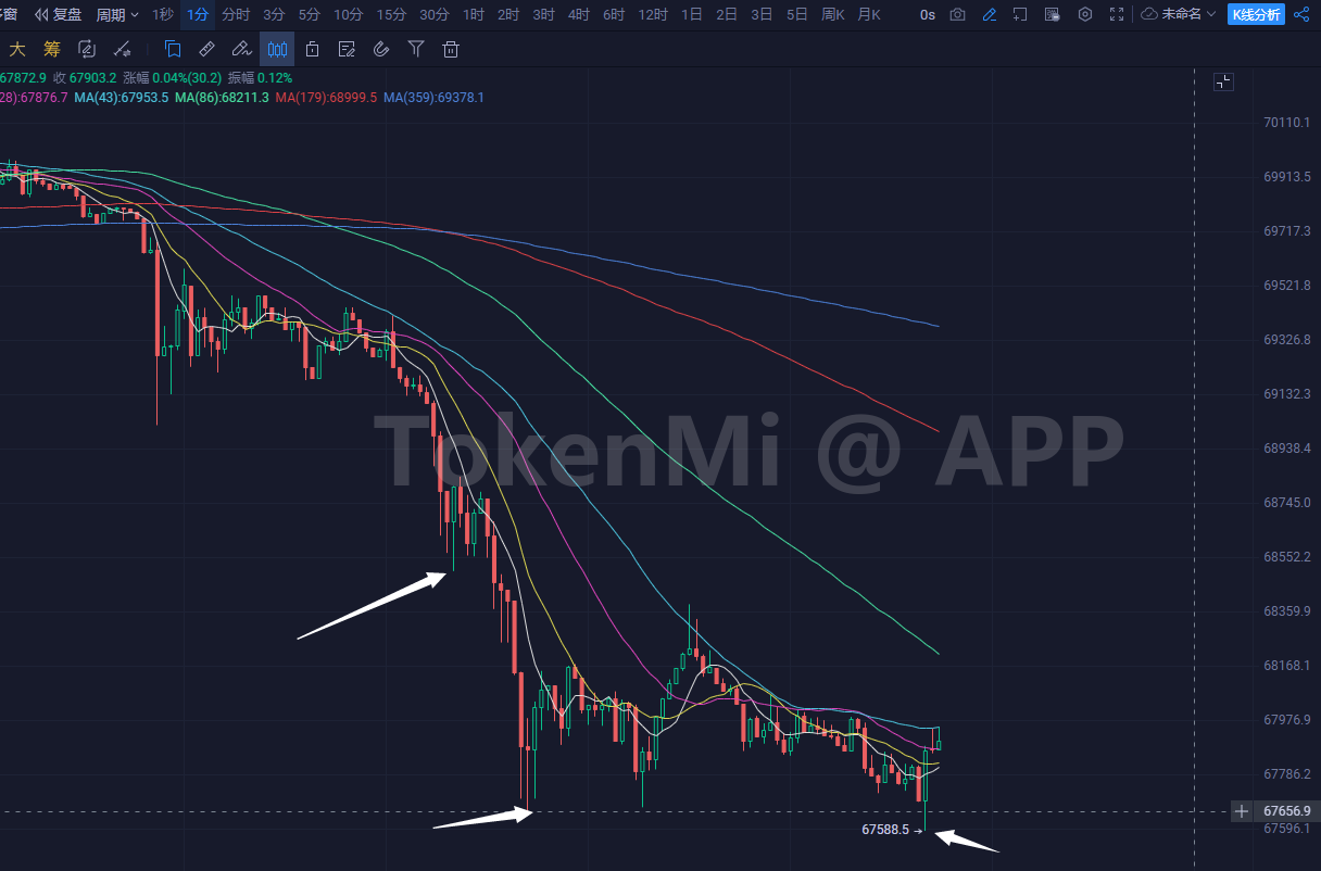分钟级86线已经下降到68200一线了