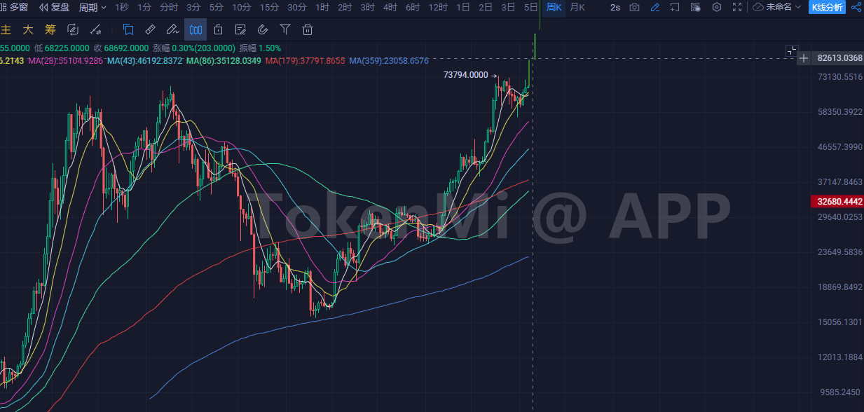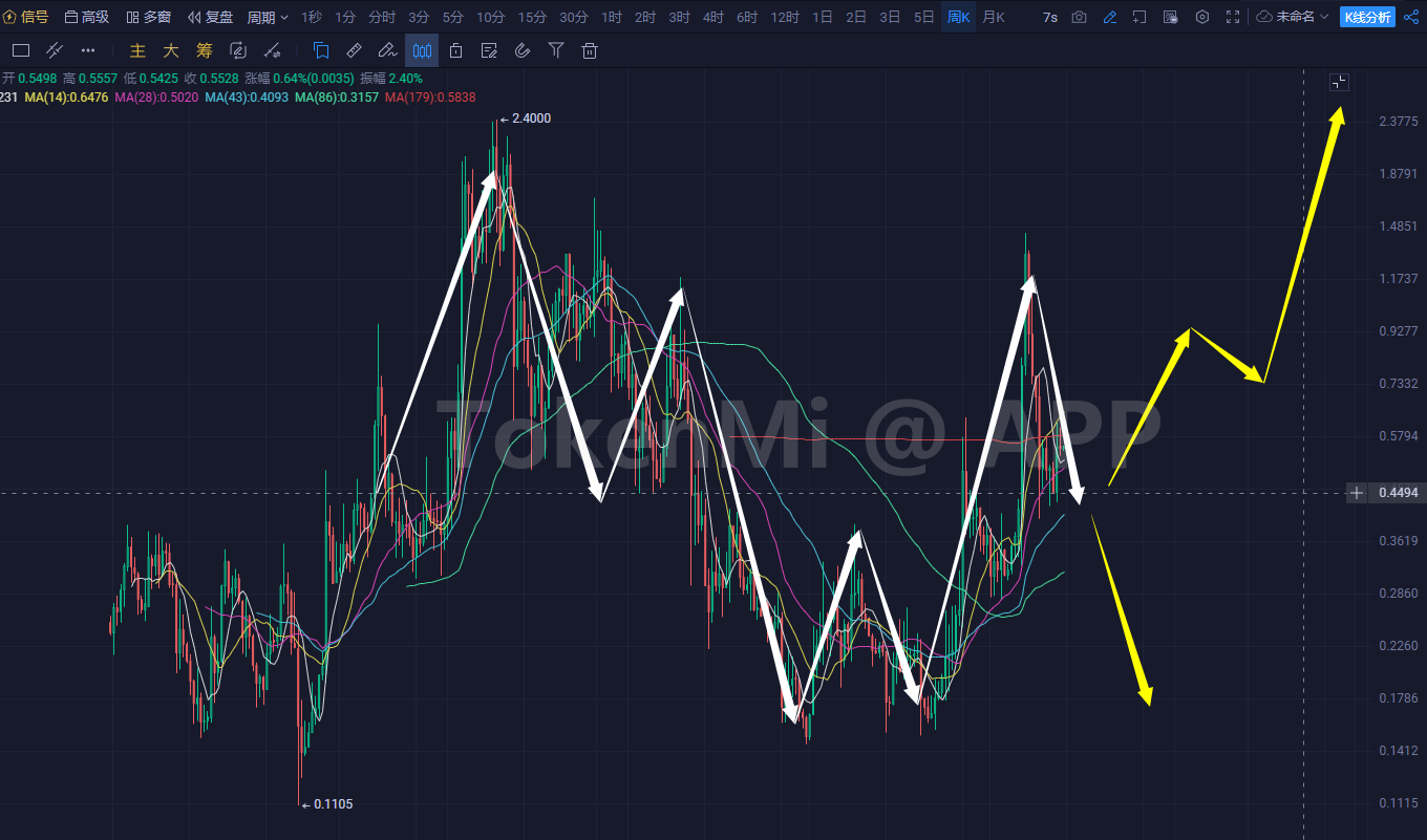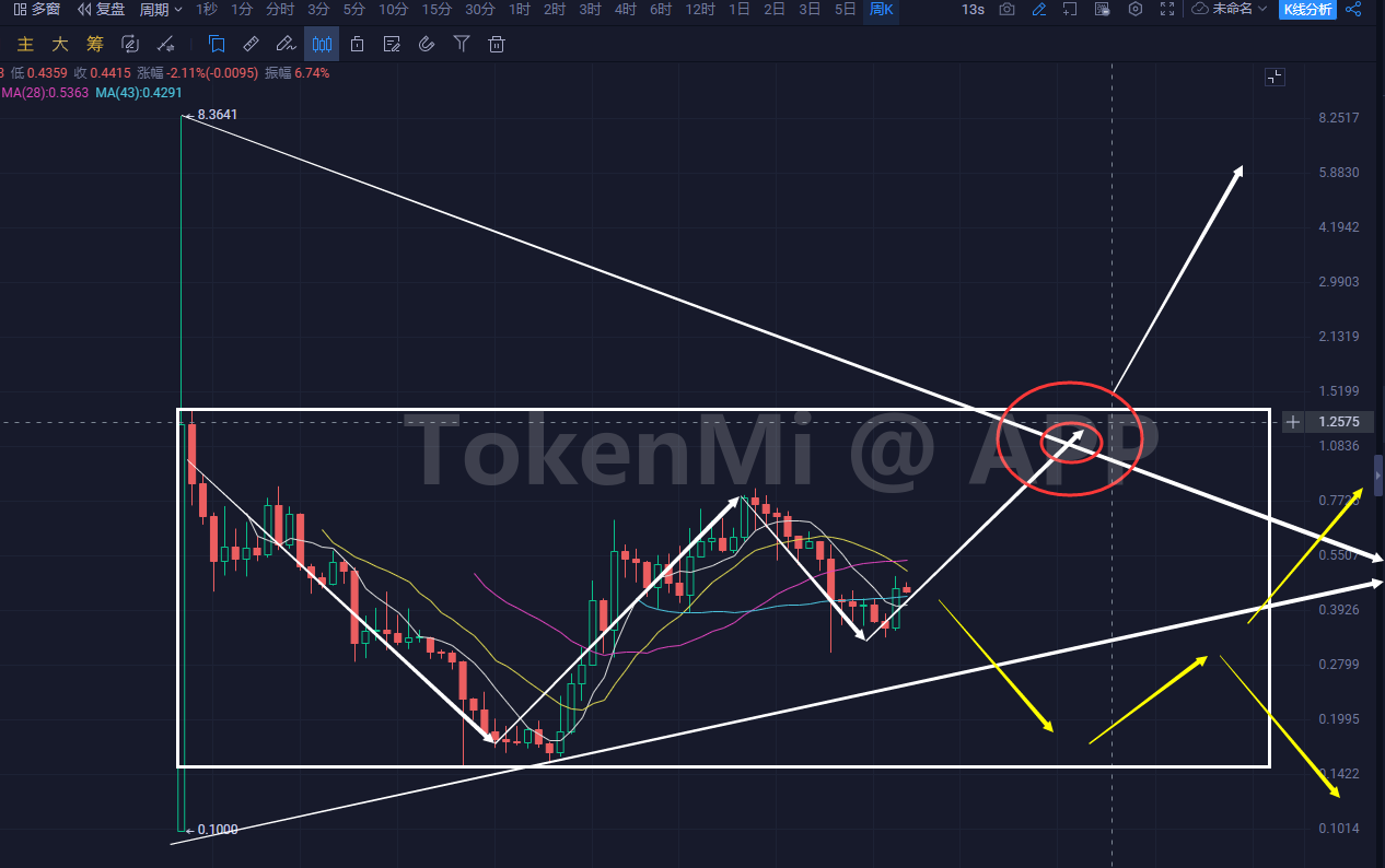 目前大饼还是打算消耗时间,因为月线已经接近吞没上个月阴线高点了,所以如果是并列线那么目标达到了自然就停了,能理解吧![[旺柴]](https://img.tokenmi.com/emot/qq/140.png)