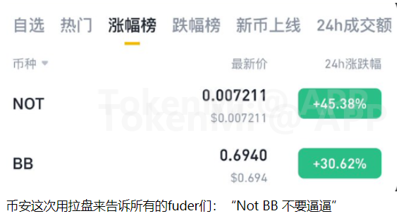 币安这次用拉盘来告诉所有的fuder们:“Not BB 不要逼逼”