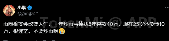 你有一点没说对,他天天在为知识付费,就是他炒币亏损的本金。