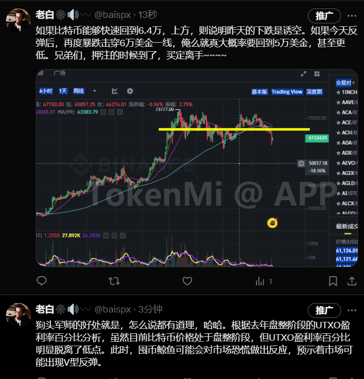 TokenMi直播室特邀圈内资深人士实时解读行业资讯,以及每日数字货币行情走势策略, 所提供的信息及策略旨在方便用户学习及参考,而非用户进行交易决策或交易相关操作之依据。 用户应当独立作出交易或与交易相关的决策, TokenMi及本直播室对于声称根据上述信息所做之交易及与交易相关的其它操作之决策导致的损失均不会以任何形式承担任何责任。