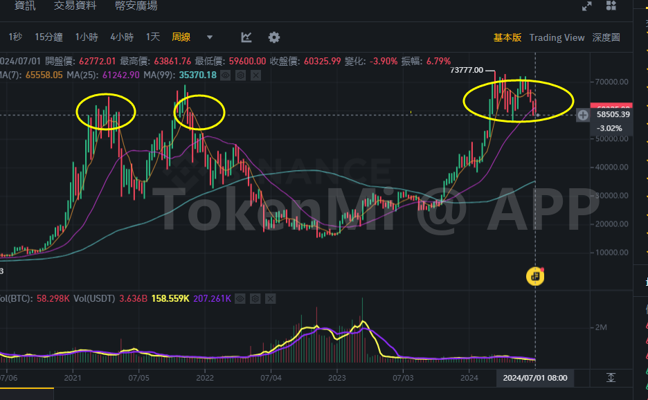 今晚21:30,美联储主席鲍威尔将发表讲话,这是近期他首次公开表态。而周四美国独立日美股休市,周三也仅交易半天。周五公布的6月非农就业和失业率数据预计较低,这或将利好市场。在比特币ETF方面,7月2日美国现货比特币ETF净流入达1.29亿美元,其中FBTC流入6500万美元,资金流入有放大趋势。研究报告还指出,以太坊现货ETF前六个月的净流入可能达50亿美元,以太坊价格上涨有望带动整个市场。欧洲杯7月15日结束,届时资金回流币圈,结合市场趋势,BTC六月虽跌但七月大概率收阳。