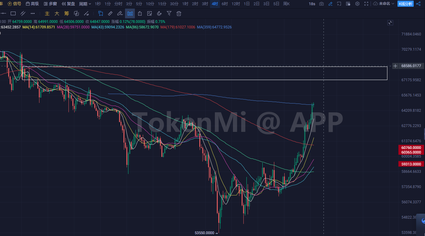 市场看着还是很强的,今天回踩的位置就86或者43线没别的,甚至都可能不回踩继续上行
