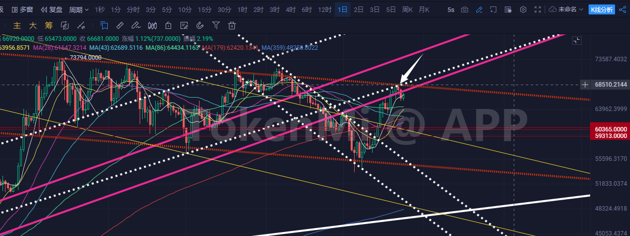 目前3日线5日线周线都到了一定的支撑,可以撑住反弹,也可以再往下磨磨,我个人觉得撑住的概率偏高一些,如果撑住有效,那么接下来几天市场应该都是上涨为主。![[社会]](https://img.tokenmi.com/emot/qq/139.png)
