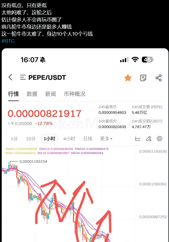 救不了,我现在每天半夜以低点止损搞一个多单,但全都寄了,最高反弹2000美金,最低反弹只有1000美金,不止盈就噶了。不过有意思的地方是,昨天前天都是白天反弹晚上新低,今天晚上也许会有些奇妙的变化,如果没变化那我就明早8点半原地多了![[奸笑]](https://img.tokenmi.com/emot/qq/128.png)