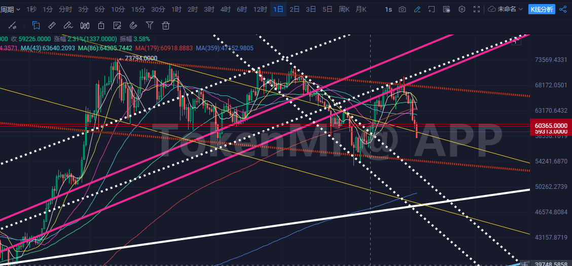 本来快进入上升通道了,现在直接被打回震荡小通道和前期向下跌的黄色通道里了