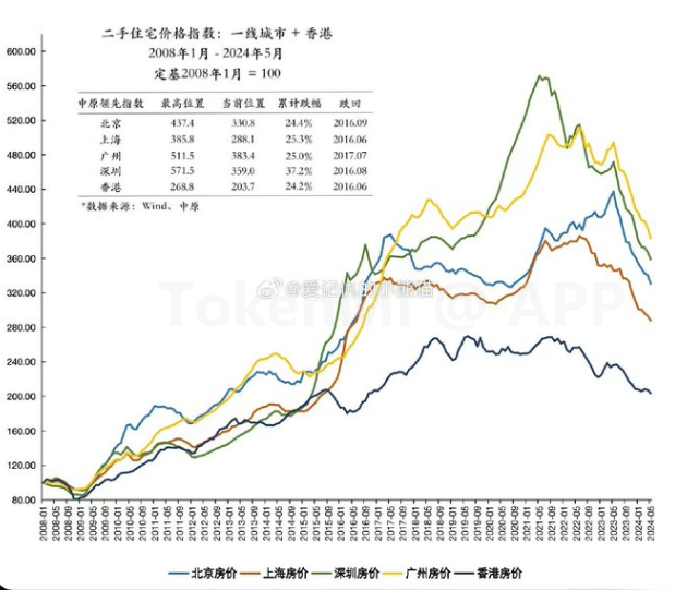 一线城市的房价已经跌回到2016年左右的水平。