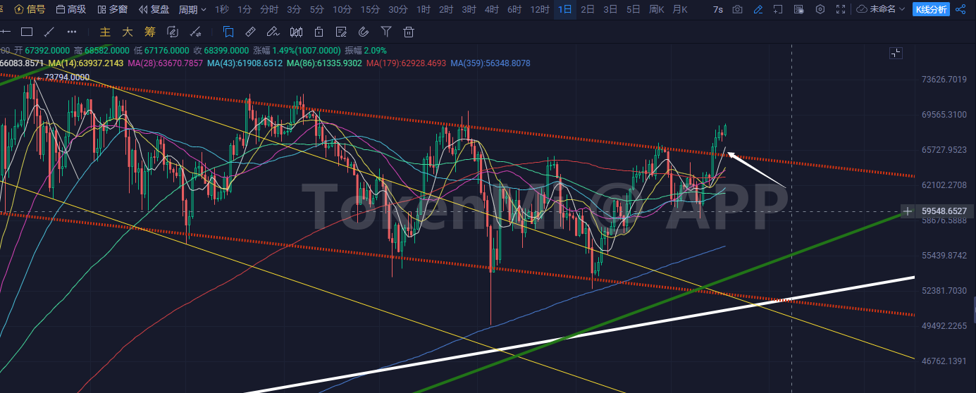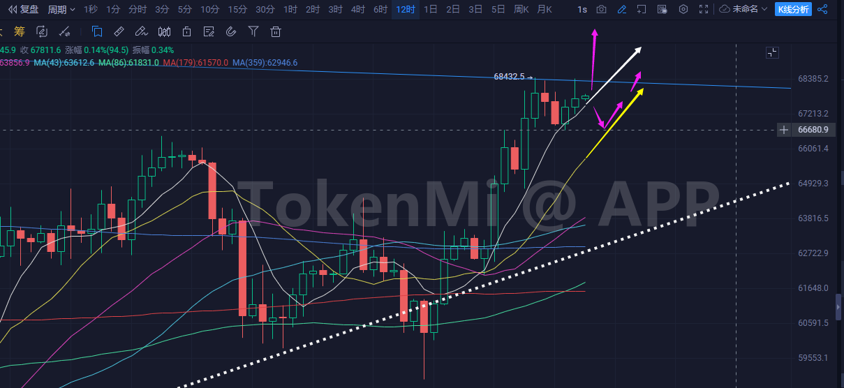 12小时白线已经在脚下了,再上不去就必然要等黄线了,刚好就是周末的时间,所以要么拉盘拉线,要么就只能横盘等线了