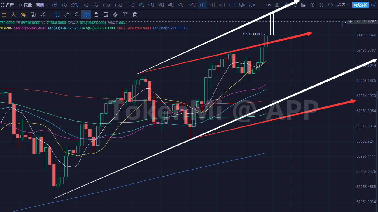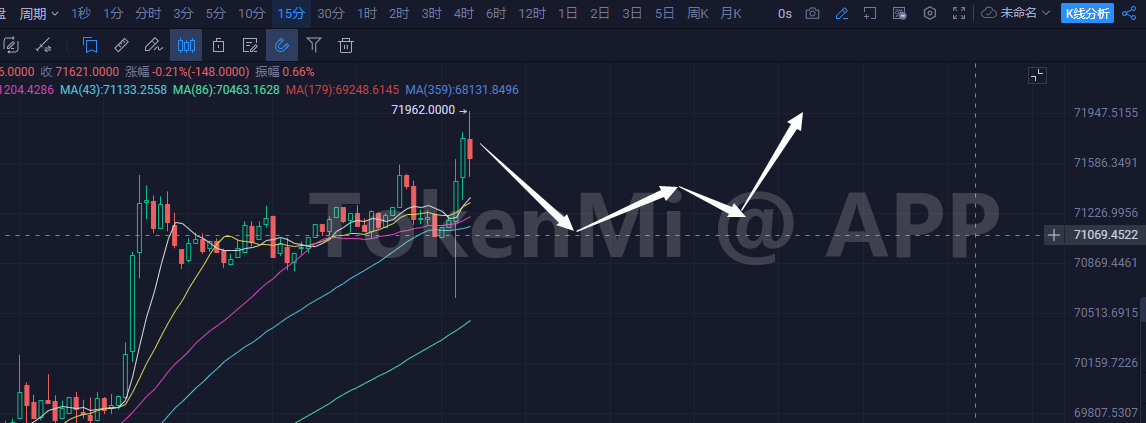 历史高点下面有强阻力,你如果死等73000附近,那也太近了,等不到回去合约不被戳了