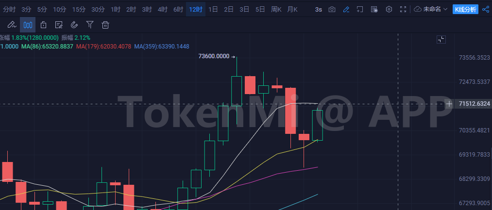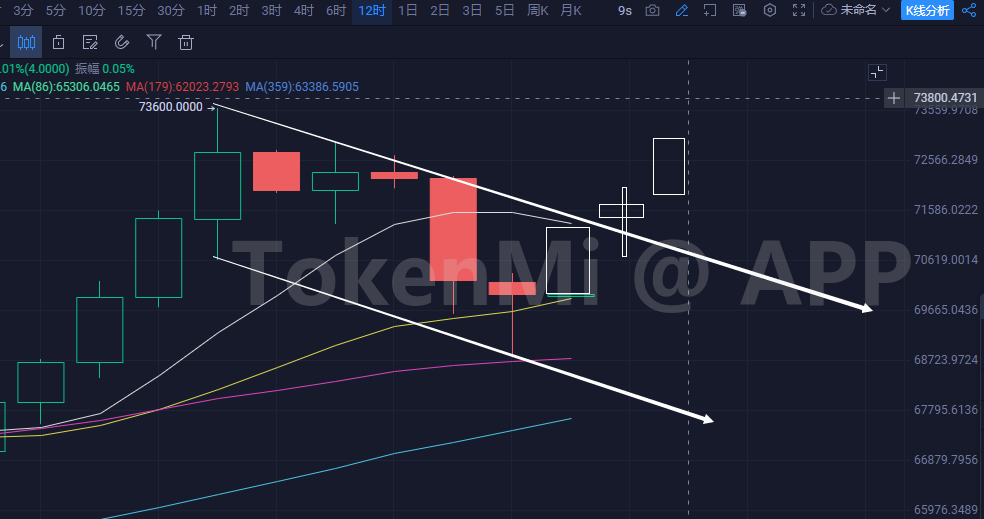 有可能在71000附近,它发挥好能直接顶上去,但是概率相对低,最上面讲的是最大概率消化压力后的走势