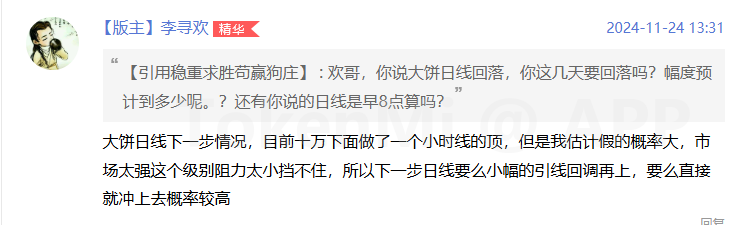 大饼除非它回调,回调我要看一下,然后通知,目前位置有可能就此就上去破十万了,LD老板