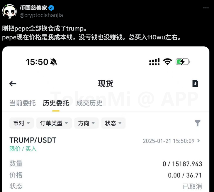 $Trump吸血全场,山寨流动性不足,是表象。 美国总统亲自下场发币,是第一层,