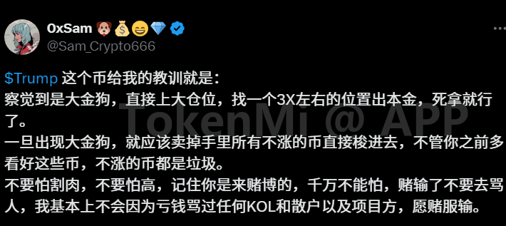 我本周的冲狗心得:在川普上赚的钱,差不多一半又被特朗普老婆拿回去了,还是特朗普玩得溜,我估计他们设计就是这么想的,没参与古巴和VINE,但是高位接盘alon,被割了一把……,