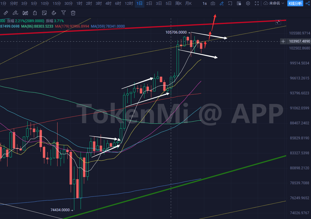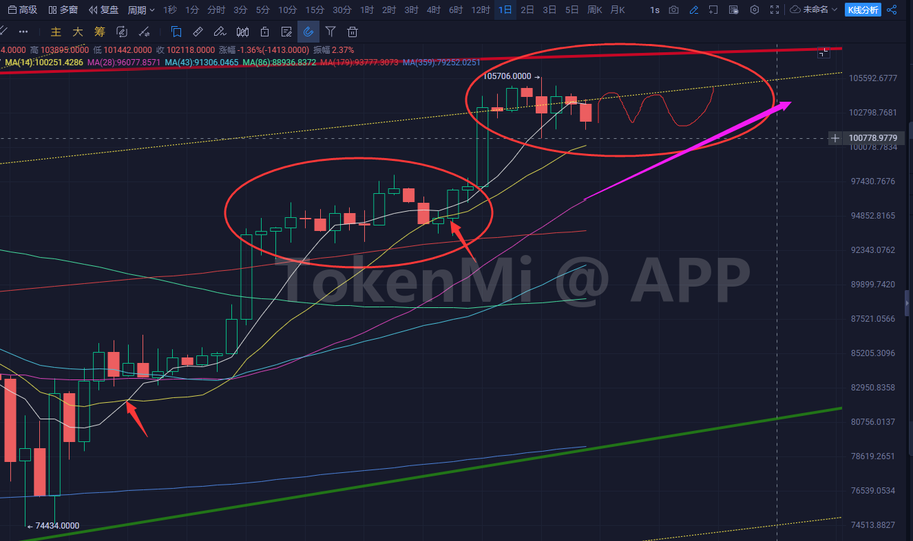 反正5月已经是阳线了,唯一的问题就只剩下会不会新高,理论上新高才更好一些,方便后续画图