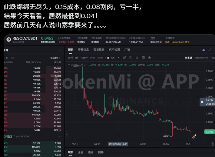 有这么一个项目的token 开盘6刀,现在0.3刀。