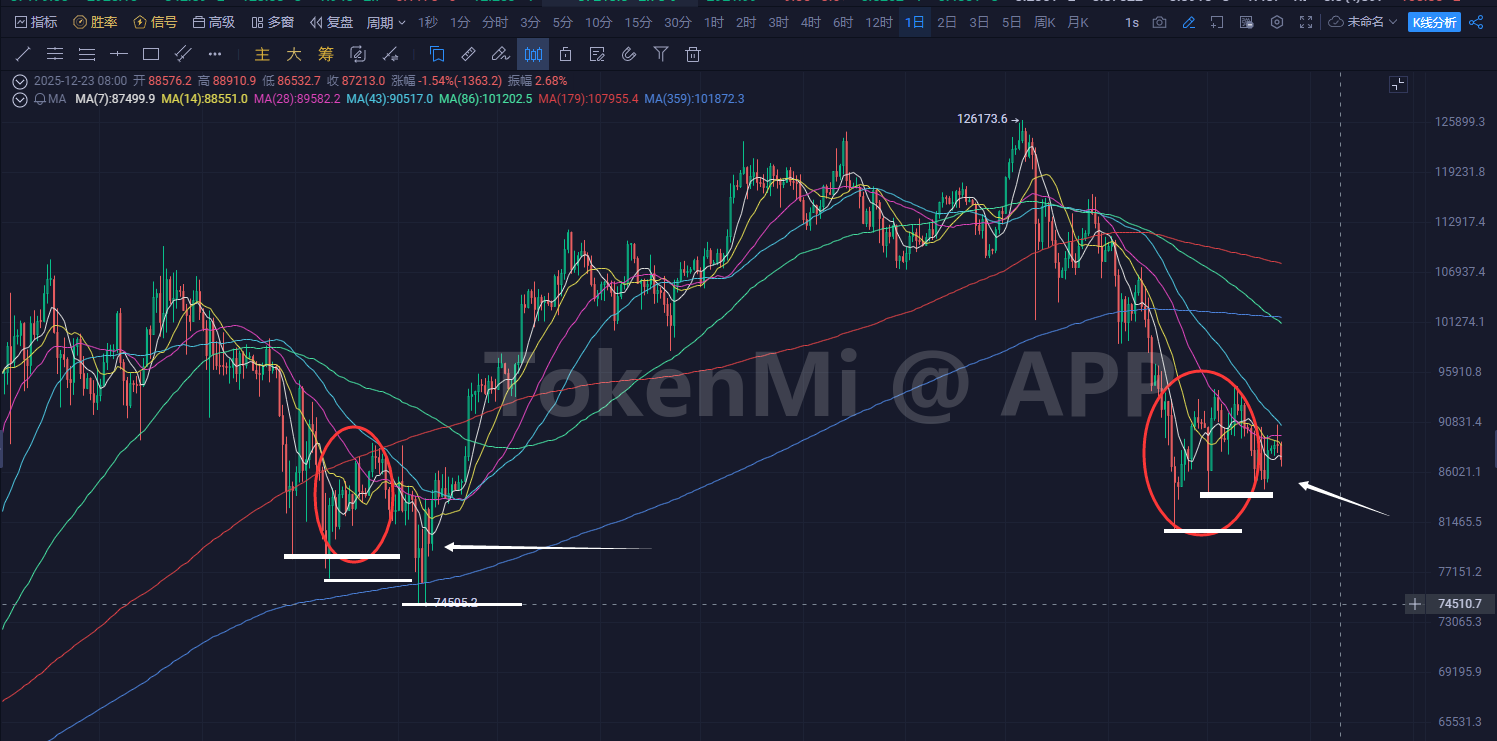 而且我们之前讲了,大饼十万也好八万也好,大把资金等着买,那么到更低买的人只会越多。那么,主力还要一个劲往下砸,要么就是假象,骗筹码的。要么就是市场后续的跌幅远不是那么点能讲清楚的,否则解释不通送筹码的目的