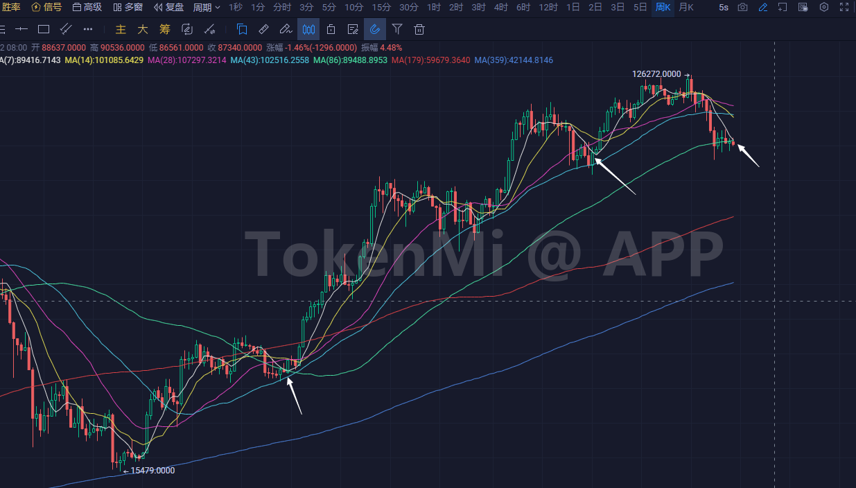 这不是幻想,这是客观现实,周线级别往下回调,没碰短均线时候低点在哪就是哪,后续都是反弹为主,尤其靠近短均线之后,短均线是必然突破的。除非是走熊,但是走熊的玩法是,周短均线还远的时候我就一波直接腰斩确定熊市了。