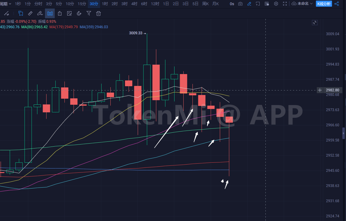 细节里这两波没有上去全是以太坊在作祟,每次关键节点以太坊都选择往下打一个大一点的阴线,这货到底在搞什么飞机
